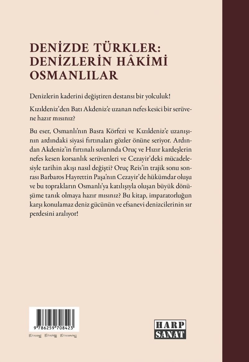 Bu eser, Osmanlı'nın Basra Körfezi ve Kızıldeniz'e uzanışının ardındaki siyasi fırtınaları gözler önüne seriyor. Ardından, Akdeniz'in fırtınalı sularında Oruç ve Hızır kardeşlerin nefes kesen korsanlık serüvenleri ve Cezayir'deki mücadelesiyle tarihin akışı nasıl değişti? Oruç Reis'in trajik sonu sonrası, Barbaros Hayrettin Paşa'nın Cezayir'de kral oluşu ve bu toprakların Osmanlı'ya katılışıyla oluşan büyük dönüşüme tanık olmaya hazır mısınız? Bu kitap, imparatorluğun karşı konulamaz deniz gücünün ve efsanevi denizcilerinin sır perdesini aralıyor!