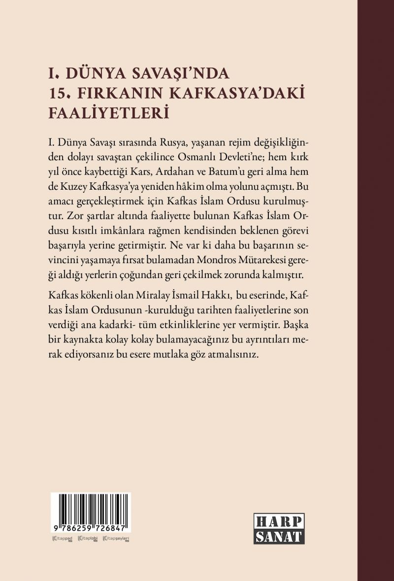 "Büyük Harpte Şimalî Kafkasya'daki Faaliyetlerimiz ve 15. Fırkanın Harekâtı ve Muharebeleri", Askeri Mecmua, Tarih Bölümü, Sayı 94, Eylül 1934.