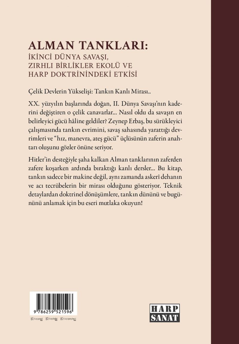 Hitler'in desteğiyle şaha kalkan Alman tanklarının zaferden zafere koşarken ardında bıraktığı kanlı dersler... Bu kitap, tankın sadece bir makine değil, aynı zamanda askeri dehanın ve acı tecrübelerin bir mirası olduğunu gösteriyor. Teknik detaylardan doktrinel dönüşümlere, tankın dününü ve bugününü anlamak için bu eseri mutlaka okuyun!